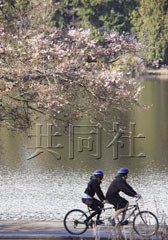溫哥華冬奧會即將開幕,但當地今年卻遭遇暖冬。照片為在溫哥華的公園內櫻花樹開始開花。(共同社)