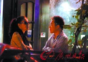 兩人逛了一會兒走到路邊開始聊天,從兩人的表情與滔滔不絕的話題來看,應該是相熟已久的老朋友,兩人不時聊得哈哈大笑,可以看到該男子笑起來有一對明顯的酒窩。