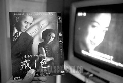 記者看到盜版《色,戒》的封面上是大家熟悉的電影海報(bào),上面同樣印著“色易守,情難防”的宣傳語(yǔ),內(nèi)頁(yè)有電影的劇情介紹。帶回辦公室一放才發(fā)現(xiàn)其中有“貓膩”,原來(lái)這個(gè)電影版的《色,戒》雖然畫面比普通的“槍碟(手持?jǐn)z影機(jī)拍攝的盜版)”好,而且?guī)缀鯖](méi)有晃動(dòng)的人影和嘈雜的環(huán)境聲音,但根本不是所謂的完整版,7分多鐘的激情戲并沒(méi)有出現(xiàn)。