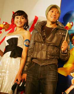 毛帽、長筒靴和厚厚羽絨服,昨天武裝嚴實的夏雨專程從另一劇組片場趕來,因為活動已經快開始了,夏雨一到現場便投入到了活動中,根本沒有時間“裝扮”一番,這與臺上只穿著夏裝短裙的另一位主演唐嫣顯得格格不入。起初在主持人的調侃下,夏雨顯得有些尷尬,10分鐘后脫去羽絨服的夏雨情緒才好轉起來,主動參與到游戲環節中。