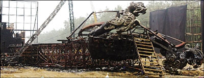 仿古戰船被燒毀