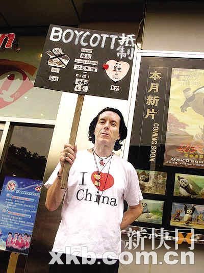 一位網友在他的博客中介紹了事情的經過:“在北大教書的美國人Tim Lies和他的中文翻譯日前來到位于北京北三環的華星國際影城,手舉著一個寫著‘BOY-COTT 抵制’的牌子開始了他抵制好萊塢電影《功夫熊貓》的實際行動。他希望中國電影不要變成第二個好萊塢。”