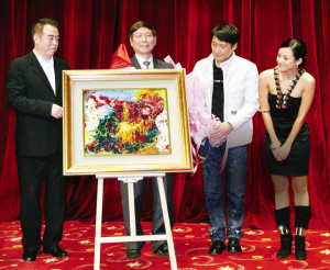 另外,上海京粹藝術品發(fā)展有限公司總經(jīng)理王嘉沐向劇組贈送了繡品《貴妃醉酒》。這幅根據(jù)著名油畫制作的繡品曾經(jīng)被奧組委作為禮品贈送給外國友人。