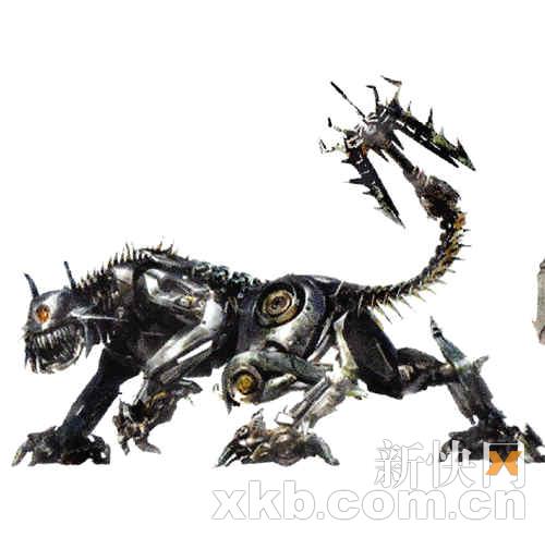 昨天,《變形金剛2》出品方公布了片中機器狗(Ravage)和威震天(Mega-tron)的新造型,和上次曝光的機器狗造型相比,新的機器狗更像《變形金剛1》里的巨蝎怪(Scorponok),渾身都是刺兒。