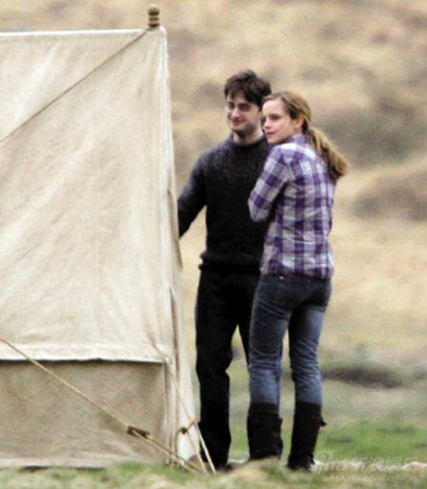 從片場(chǎng)照片以及小說情節(jié)推斷,丹尼爾與艾瑪拍攝的是他們逃亡在外、風(fēng)餐露宿的場(chǎng)面,“羅恩”魯伯特則因?yàn)槟承┰驎簳r(shí)離開了他們!豆げㄌ7》全名為《哈利·波特與死亡圣器》,這一集電影將一分為二,上部于2010年11月19日上映,下部于2011年7月15日上映。
