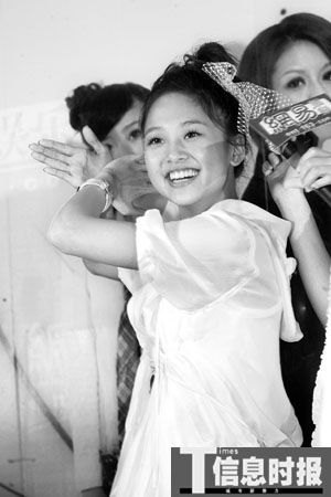 裝可愛是這群小女生的拿手本領(lǐng),應(yīng)主持人要求后,MeiMei率先在臉頰邊擺出OK的手勢,再配合微嘟的嘴,十分可愛。走氣質(zhì)美女路線的Apple則使出“一陽指”功夫,緊貼嘴唇做出“噓”的動作。大牙左右手并上,動作幅度大,謀殺了不少菲林。搞怪的鬼鬼擺出像龜波氣功的姿勢還笑說:“這是翻蓋手機(jī)。”而大方的她被問起人氣高是否因?yàn)楹秃谌恕巴印?其實(shí)只是房東跟房客的關(guān)系)時(shí),就立刻流露出羞澀的神態(tài)一個(gè)勁揮手:“哎呀,不要這么說,他是好哥哥,很照顧我而已。”