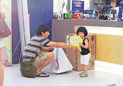 12日傍晚記者目擊陶子一家人步出家門,李李仁體貼先幫她開車門,等她坐穩(wěn)再讓小荳荳上車,安頓好后車子開向信義區(qū)“紐約紐約”購物中心,他們先直沖玩具城,小荳荳興奮到處找玩具,陶子出聲制止,李李仁讓女兒試騎一臺價值近萬元新臺幣的玩具車,夫妻倆二話不說直接埋單。
