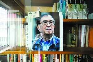 昨日,在上海謝晉家書房內,書架上掛起了謝晉生前照片。當天,著名導演謝晉去世。鈕一新 攝