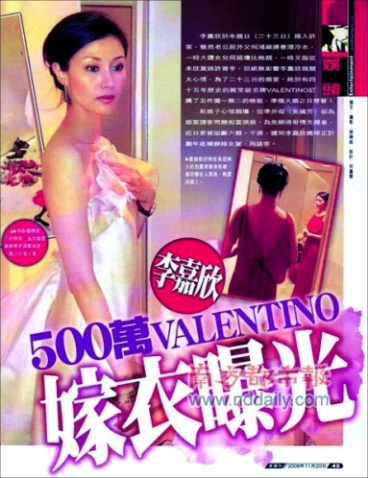 本報(bào)訊 (見(jiàn)習(xí)記者 陸欣)李嘉欣500萬(wàn)嫁衣曝光?昨日,最新一期《一周刊》以“500萬(wàn)Valentino嫁衣曝光”為題報(bào)道,稱(chēng)李嘉欣為婚禮專(zhuān)門(mén)訂做了5件高級(jí)晚裝,總價(jià)值高達(dá)500萬(wàn)元!另?yè)?jù)香港媒體報(bào)道,因自己的豪門(mén)婚事備受外界質(zhì)疑,傳聞?lì)H多,準(zhǔn)新娘李嘉欣在上海接受媒體采訪時(shí),一一作出了回應(yīng):不得未來(lái)公婆喜愛(ài)?“(他們)送了好大驚喜給我”;許晉亨被前岳丈暗批?“我們(指她與何超瓊)是好朋友”等,而被傳出與舊愛(ài)大劉搶風(fēng)頭,她表示新聞相撞純屬巧合,并透露大劉已送厚禮。