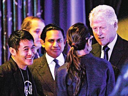 于好萊塢擁有知名度的楊紫瓊(右)及李連杰獲得近距離位置,與克林頓閑談。
