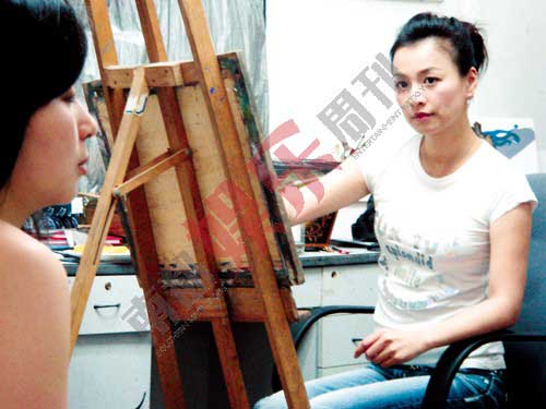 很快張庭就成為上師大美院的正式研究生,她那一屆只有她一個學生,專業是裝飾設計,不過素描油畫是必修課。她常常一個人在畫室里畫人體模特,無人打擾,司機接送,滿身名牌,真的是這個學校里最高端的學生了。張庭每周三四天會定時練畫,8個小時不間斷,“表演是一種藝術,它兼具理性和感性,我覺得美術跟表演是相通的!