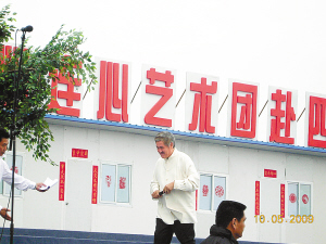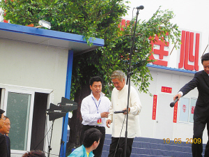 雖然本次“心連心”藝術團在明星陣容上創下了空前的紀錄,但是劇組在籌備過程中卻是對成本極盡節約。昨日早上6點半,記者提前來到演出現場,碩大一個舞臺就搭建在板房區的一個空地上,舞臺背景也是就地取材,由幾間貼著大紅對聯的板房組成,但看著特別的溫暖。