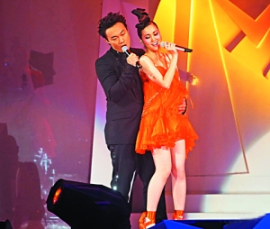 謝安琪開唱吊帶短裙出場 與陳奕迅臺上玩親熱(圖)