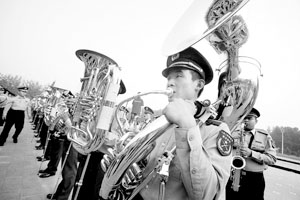 在即將到來的國慶60周年閱兵和群眾游行活動中,他們是最為特殊的一支隊伍:第一個入場,最后一個離場;不受檢閱,但用45首樂曲 (部分曲目重復(fù))控制著整場慶典的節(jié)奏。
