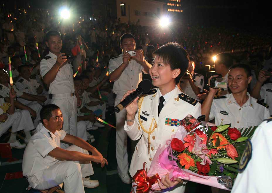 中新網8月22日電 8月21日晚,宋祖英、呂繼宏等多位名星,齊聚南海艦隊某軍港,為剛剛凱旋的海軍第二批護航編隊官兵獻上了一臺精彩的演出。