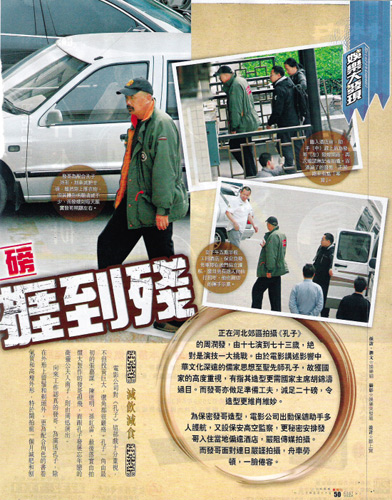 劇組目前移師河北郊外的“戰國城”拍攝。發哥每日開工約八小時,至下午五時半收工,為保密造型,上裝卸裝均在片場內進行。發哥和發嫂住在位于河北省高碑店市三星級酒店,從酒店到片場僅需半小時車程。雖然該酒店外觀普通,但在當地已是最好的酒店。劇組為發哥包下最貴的總統套房,內設兩款按摩浴池,每晚租金5880元人民幣,一個月便花逾17萬元。劇組還為發哥提供了五名助手,另配專車和司機,每次發哥出車,必有另一部車護航。 (阿文)