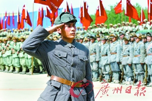 日前,《建國大業(yè)》劇組在北京南苑機(jī)場拍攝了全片規(guī)模最大、氣魄最足的一場戲——1949年3月25日,毛澤東主席在北平西苑機(jī)場進(jìn)行了新中國成立之前的閱兵儀式“西苑機(jī)場閱兵”。