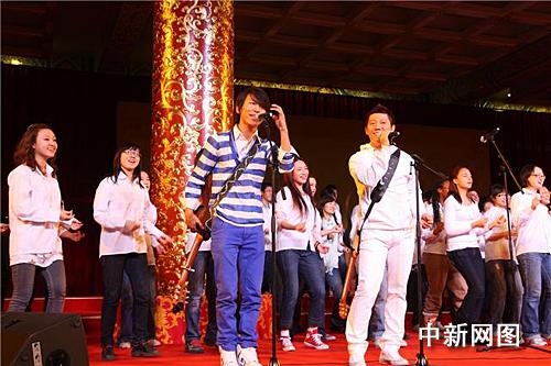 中新網11月18日電 11月13日至19日,美國總統奧巴馬對亞洲進行國事訪問,期間于15日至18日訪問中國上海和北京。為了歡迎奧巴馬總統首次訪華,昨晚(17日)在人民大會堂特別舉行了一場慶祝活動。席間中國文藝界的諸位大師們紛紛登臺獻藝,而羽泉作為中國流行樂壇的唯一代表出席了此次活動,并壓軸獻唱歌曲,讓兩國領導人及各路中外記者領略到中國流行音樂的獨特魅力。事后,奧巴馬走到羽凡身邊非常親切的說:“good show!(出色的表演)”,而對海泉則說:“I like your voice(我喜歡你的聲音)”。