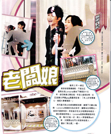 早前記者到現場視察,發現古巨基與Lorraine一起在店內雙雙身穿其品牌時裝做“生招牌”,兩人還在店內熱情地向客人介紹產品;等客人買單后,又一起以笑臉揮手送客。之后古巨基開始檢查店內的各種裝潢,而Lorraine則到柜臺檢查賬目,非常“持家有道”。