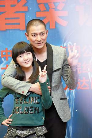 自電影《長江七號》之后,童星徐嬌認片中的爸爸周星馳為干爸爸。這次在《未來警察》中,徐嬌又演劉德華的女兒,昨天的發布會上,徐嬌對劉德華也是一口一個“劉老爸”,非常親熱。