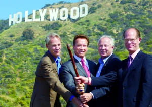 美國時間4月26日,加州州長施瓦辛格專門在招牌所在的山腳下演講,他說:“好萊塢招牌是夢想、機遇和希望的符號,它矗立在那里歡迎著一代又一代的夢想者、藝術家,還有奧地利的健美運動員來到這里!彼在講話中感謝了捐助者們,他們包括美國電影藝術與科學學院、CBS電視臺、NBC環(huán)球公司、索尼影業(yè)、20世紀福克斯公司、華納兄弟公司、時代華納公司、斯皮爾伯格、湯姆·漢克斯夫婦等等。