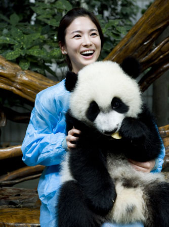 成都大熊貓基地方面表示:“去年因四川大地震,熊貓的另一個(gè)棲息地——臥龍基地被毀,因此正在募集重建基金,而這次宋慧喬擔(dān)任愛(ài)心大使,所以希望能夠得到中國(guó)和亞洲其他國(guó)家的幫助。”