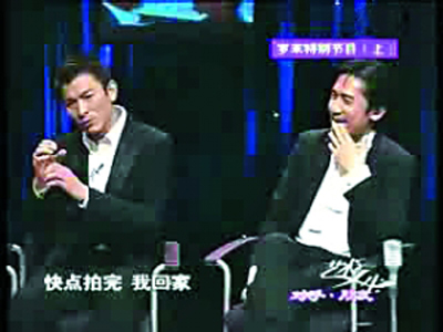 當(dāng)梁朝偉一上場(chǎng),朱軍便說:“上次錄《無間道》時(shí)你和劉德華一起欺負(fù)我,這次就你一個(gè)人,我終于可以報(bào)仇了。”而梁朝偉則很不解地說:“上次是你欺負(fù)我們吧。”