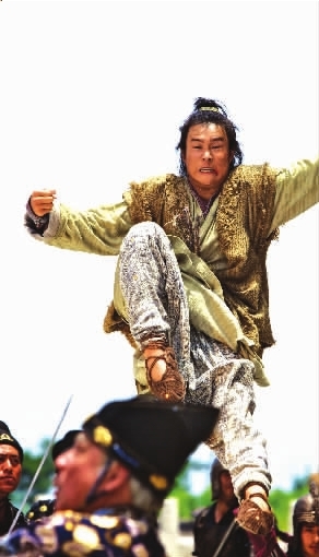 小沈陽在《大笑江湖》中飾演一名平凡小鞋匠,機緣巧合之下練就絕世武功,變成了一個勇于承擔(dān)的男子漢。既然是大俠當(dāng)然要會“飛”,而動作指導(dǎo)程小東也是個“大好人”,因此讓小沈陽開心地在天上飛來飛去一整天,圓了他飛天小俠的夢。程小東表示:“小沈陽作為二人轉(zhuǎn)演員還是有些功夫底子的,否則不可能吊在半空中一天還這么瀟灑,換作別人早送醫(yī)院了。”不過由于橫店天氣過于炎熱,小沈陽一遍遍拳打腳踢、跳躍騰挪,最終虛脫不起,也差點送醫(yī)院。記者邱晨通訊員趙佳