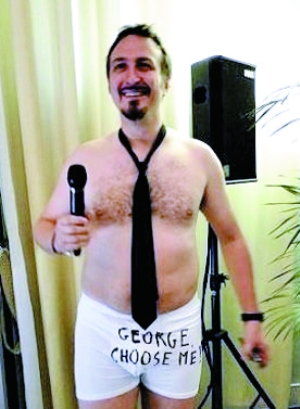 出人意料的是,一名意大利男記者也向喬治索吻:“喬治,選我,選我。我能吻你嗎?就一次!”說話間,他脫去上衣和褲子,只剩黑領帶和短褲,短褲前面還寫著“GEORGE,CHOOSE ME(喬治,選我)”。克魯尼處變不驚,微微一笑:“你敢冒這么大的風險非常勇敢,可惜它并不奏效。不過,你的領帶非常漂亮,而且很長。”克魯尼的幽默引來全場大笑。