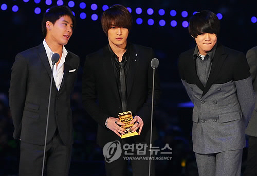 英雄在中則含淚發表獲獎感言,他說“希望通過這里向正在關注頒獎盛會的所有海外及韓國的歌迷們,以及也許正在看著這個頒獎典禮的其他2名成員允浩和昌珉說一句,我愛你們!