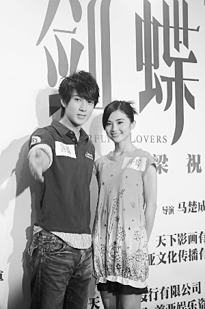 在《劍蝶》里,吳尊(左)和阿Sa(右)分別扮演梁山伯和祝英臺。記者 郭延冰 攝
