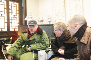 陳凱歌是華人導演中惟一獲得過金棕櫚大獎的,因此福茂來到中國后第一個想見的導演便是他。昨天下午,《梅蘭芳》劇組在懷柔拍攝一場黎明和陳紅的對手戲。3點左右,福茂先生一行3人在工作人員的引導下直接來到了拍攝現場。福茂見到坐在監視器前的陳凱歌導演后,先來了一 個熱情的擁抱,隨后就坐在了監視器前,與導演親切地交談起來。