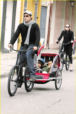 布拉德·皮特早前宣布為新奧爾良第9街重建150間房屋的“Make It Right”計劃,現得到威爾·法瑞爾等人的支持,認投資助興建其中一間房間。心情大好的布拉德·皮特和嬌妻安吉麗娜·朱莉帶孩子們郊游,當起了“人力車夫”。