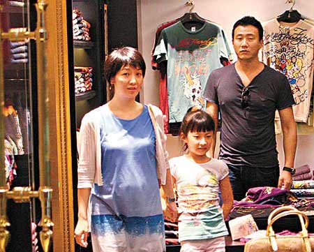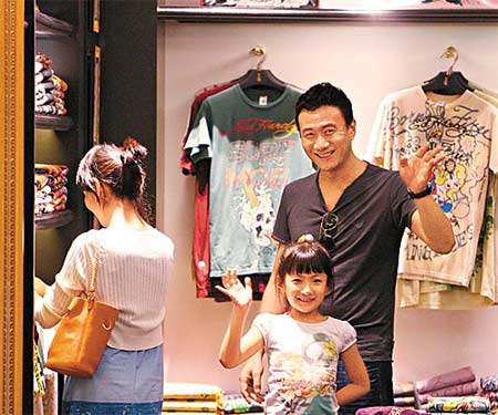 胡軍將赴不丹參加劉嘉玲、梁朝偉婚禮,昨日他攜妻女購物。