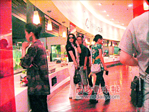 鞏俐與助手一同在超市買菜。
