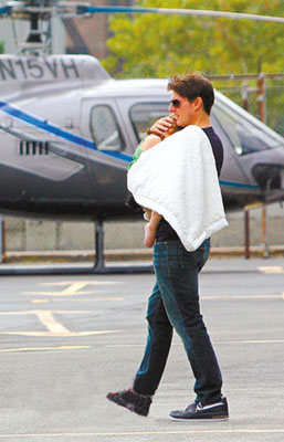 阿湯哥近日帶愛女蘇瑞乘坐直升飛機出行,他效仿麥當娜的行為太不環保,卻絲毫不怕遭受炮轟,就連女兒蘇瑞也難忍機場噪音,堵耳以示抗議。
