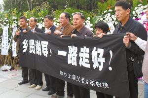 “鄉(xiāng)賢謝導(dǎo),一路走好!”昨日,為送謝晉最后一程,謝晉家鄉(xiāng)——上虞的父老鄉(xiāng)親們也專程派代表來到上海。“謝晉是我們的驕傲,他一生都在用電影為底層人民說話。現(xiàn)在他走了,但我們一定會(huì)把他的電影夢(mèng)想繼續(xù)下去。”這位謝晉的老鄉(xiāng)說。
