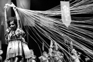 演出期間,比約克一度化身“蜘蛛女”,身著五彩斑斕的演出服展現“吐絲”一幕。而演唱會的下半部分簡直是在比約克和歌迷的熱歌熱舞中進行的。圖/陳強華
