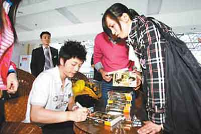 昨日,來重慶宣傳新專輯的王櫟鑫在江北觀音橋簽售,由于現場的人數實在太多,簽售活動差一點取消。
