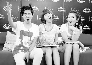 S.H.E和某網站合作的網路電臺將在10月17日播出最后一集,日前三人抽空去進行此集的節目錄影。Ella綁了個搞笑小辮子;Hebe則一改酷勁,頻在鏡頭前扮丑;Selina就首度放下飄逸長發耍性感。近來頻頻在節目中“語不驚人死不休”的S.H.E,在末集都不改“話癆”風格,Ella大爆自己有腸躁癥,出門在外常常是走到哪拉到哪;有潔癖的Hebe正好相反,擔心外面的廁所不干凈,總是憋到回家才“解放”。