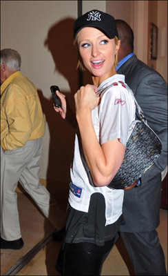 組圖:希爾頓甜美運動裝扮參加超級碗盛況