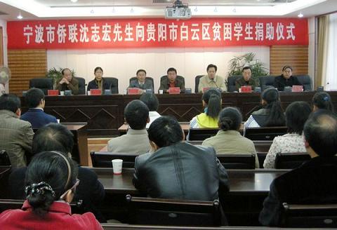 據(jù)悉,沈志宏系留學(xué)歸國人員,浙江前程投資股份有限公司董事長。當(dāng)他通過寧波市僑聯(lián)了解到貴陽市白云區(qū)有一部分品學(xué)兼優(yōu)的農(nóng)村高中生因家庭困難上不起學(xué)時,沈先生當(dāng)即表示愿意出錢資助這些學(xué)生上學(xué)。他認(rèn)為,孩子是一個家庭的寄托,也是一個國家的未來,一個民族的希望。出一點錢,盡一點綿薄之力,能讓這些家庭經(jīng)濟(jì)困難的學(xué)生充分感受到社會的溫暖和關(guān)愛,讓他們不因貧困而跌倒在人生的起跑線上,是一個僑界企業(yè)家應(yīng)盡的社會責(zé)任。