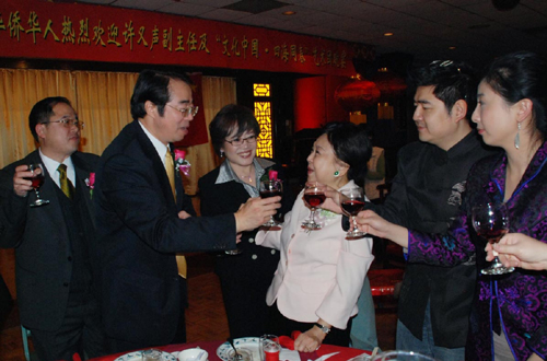中新網3月4日電 據美國《芝加哥華語論壇》報道,當地時間3月3日晚,大芝加哥僑界在南華埠舉辦盛大宴會,熱烈歡迎由國務院僑辦副主任許又聲率領的“文化中國•四海同春”藝術團。