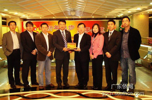 廣東省僑辦副主任鄭建民(右4)向澳門僑界青年協會致送紀念品