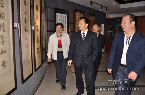 廣東省副省長萬慶良(左二)在劉曉捷副秘書長(右二)、吳銳成主任(右一)、王明惠館長(左一)陪同下視察廣東華僑博物館