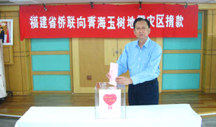 中新網(wǎng)4月22日電 據(jù)福建僑聯(lián)網(wǎng)消息,天災(zāi)無情,人間有愛。4月21日上午,福建省僑聯(lián)積極響應(yīng)福建省委組織部、省直機關(guān)工委的號召,舉行了向青海玉樹地震災(zāi)區(qū)捐款的儀式。