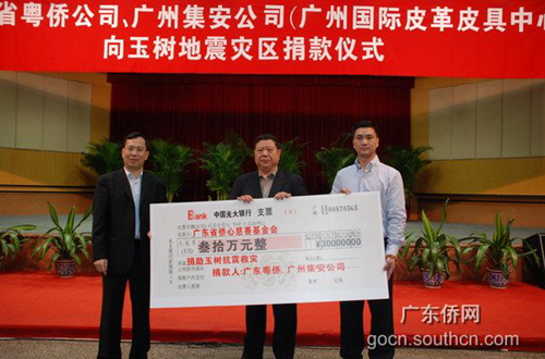 廣東粵僑公司、廣州集安公司向玉樹災區捐款30萬