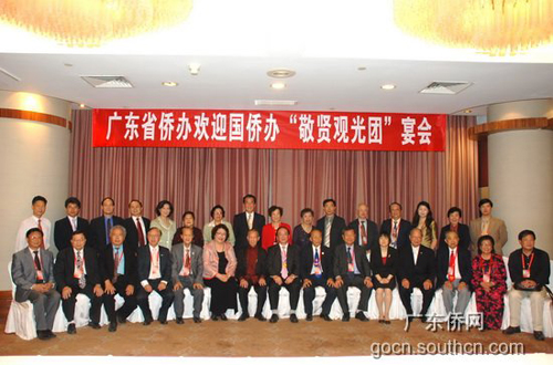 中新網5月18日電 據廣東僑網消息,5月13日晚,廣東省僑辦、廣東省海外交流協會在廣州花園酒店設宴隆重款待來廣東參觀訪問的國僑辦、中國海協第十二期“敬賢觀光團”。廣東省僑辦主任、省海協常務副會長吳銳成、省僑辦副主任黎靜會見并宴請了觀光團所有成員。