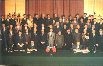 歷史性時刻――中華人民共和國與葡萄牙共和國一九八七年四月十三日在北京共同簽署關于澳門問題的聯合聲明。