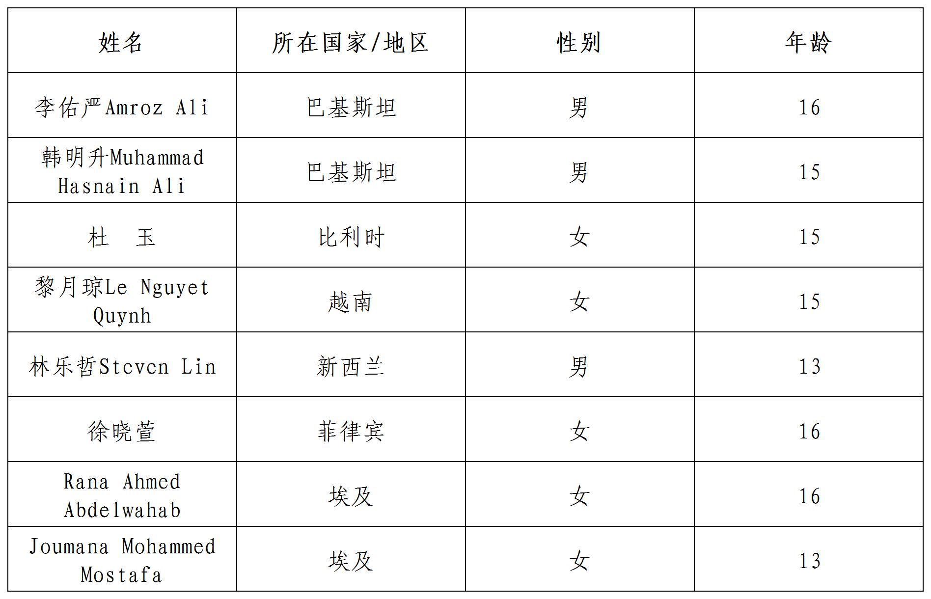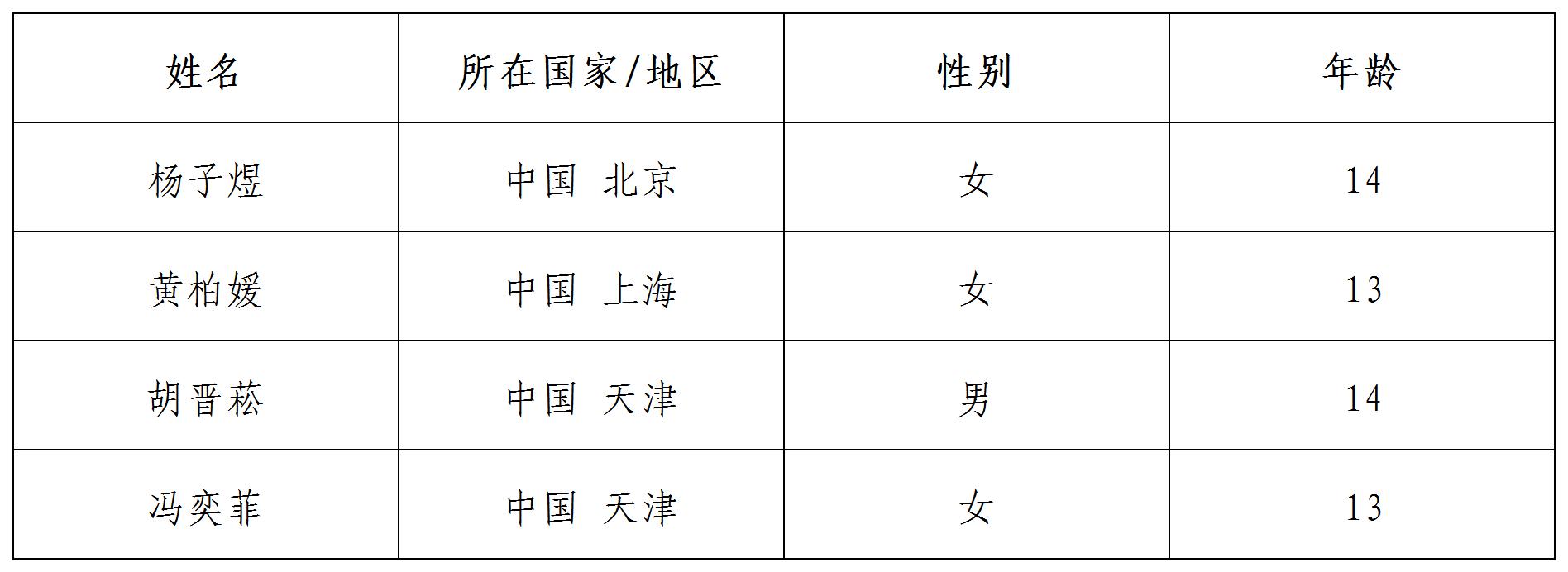 公示時間:即日起至2022年2月1日北京時間24:00 咨詢方式: 郵箱:yszxhd@sclc2017.org 聯系電話:15810563423 如有異議,請于公示期間致電或郵件咨詢。本活動最終解釋權歸中國宋慶齡青少年科技文化交流中心所有。 備注:標注國家以參與者報名時駐在國為準。